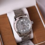 Built with a stainless steel case and bracelet, the timepiece includes a day and date display with magnified viewing for convenience. The fluted bezel adds a luxurious aesthetic, making this watch a statement piece for both daily wear and formal occasions.
